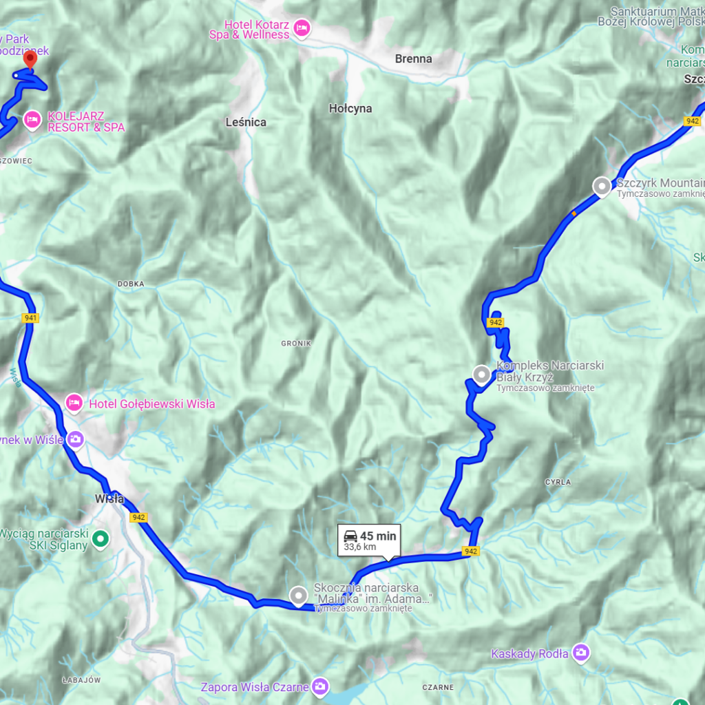 Do Górskiego Parku Równica można łatwo dotrzeć samochodem. Trasa ze Szczyrku, choć kręta, oferuje wiele malowniczych widoków, które warto podziwiać po drodze. Podróż obejmuje przejazd przez Przełęcz Salmopolską oraz serpentyny prowadzące do Ustronia. Całkowita odległość wynosi około 30 km, co pozwala na szybkie i wygodne dotarcie na miejsce.